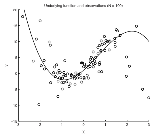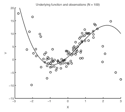 Here's an example. Say we have data with a non-linear conditional mean (solid line), but the data is noisy:
